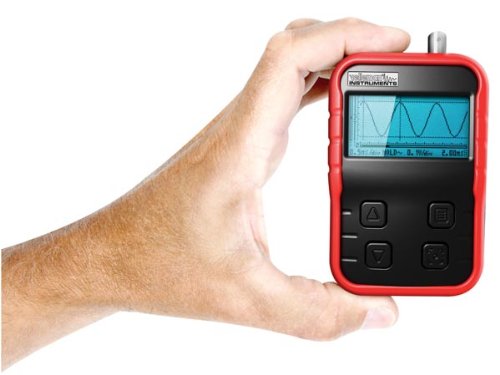 Do not let its size fool you!This Oscilloscope packs a lot of power in a tiny box.Now you can really take a powerful oscilloscope everywhere.•bandwidth: up to 10 MHz (-3dB or -4dB at selected ranges)•input range: 1mV to 20V/division in 14 steps•input coupling: DC, AC and GND•real-time sample rate up to 40MS/s•AD resolution: 8 bits•time base: 250ns to 1h per division•auto set-up function (or manual)•probe x10 readout option•readouts: DC, AC+DC,True RMS, dBm, Vpp, Min-Max. (±2.5%)•audio power measurement from 2 to 32 ohms•hold & store function•time and Voltage markers readout•Max. 100Vp AC+DC•white LED backlight•operates on NiMH rechargeable battery pack (included)•operates up to 6 hours on one charge*•charging power supply: 9Vdc/200mA•for use on CLASS II pollution degree II installations•dimensions: 74 x 114 x 29mm / 2.9 x 4.5 x 1.14"•weight: 200g, (7oz)