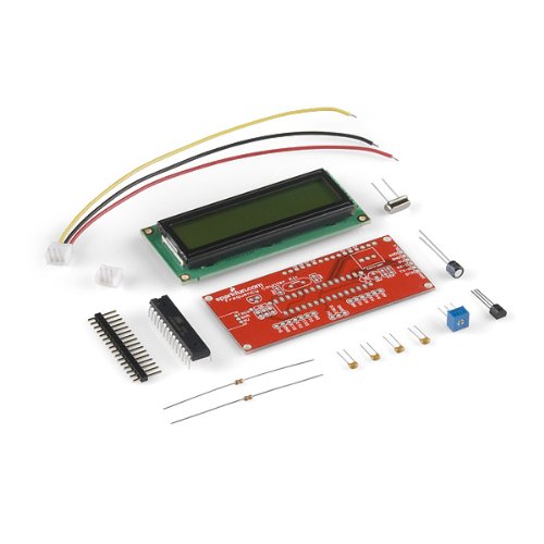 This new revision includes a JST cable and also fixes the TX/RX swap from the last revision. Now you can use an FTDI correctly. We are also including a 16-pin header instead of a 40-pin header (only 16 pins are necessary).This kit is a re-hash of Nuxie's FunCount frequency counting kit. It includes everything you need to build a frequency counter capable of measuring frequencies from 1Hz to over 6MHz. The measured frequency is displayed on a 16x2 black on green LCD.Our new design is based on the popular ATmega328. The ATmega comes pre-programmed with both the frequency counting firmware, and a serial bootloader, so you can program it as you would an Arduino. If you want to program it via Arduino, you'll need a FTDI Basic Breakout. Unused pins of the ATmega328 are broken out for all your custom firmware desires.The ATmega328 runs at 16MHz, and should be able to reliably count frequencies up to around 6.4MHz (assuming a 50% duty cycle). Voltage supplied to the kit should be 5VDC. The voltage input on the frequency pin should not exceed the supplied voltage, and should not go below 0V.The kit includes a 3-pin JST male connector, so you can use this wire to deliver +5V, ground and the frequency signal to the Counter.